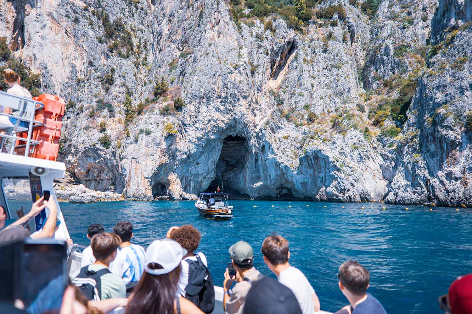 As the boat circles the island, prepare for breathtaking sights. Sail past the towering Faraglioni Rocks, Capri’s most iconic natural landmark, and capture photos from unique angles. Admire sea caves carved into cliffs, with the Blue Grotto standing out as the most enchanting of all. Hidden coves and lush vegetation create ever-changing scenery, blending Mediterranean beauty with a sense of mystery. Throughout the Capri Island Boat Tour, the turquoise waters reflect sunlight in a dazzling display, turning each moment into a postcard view.