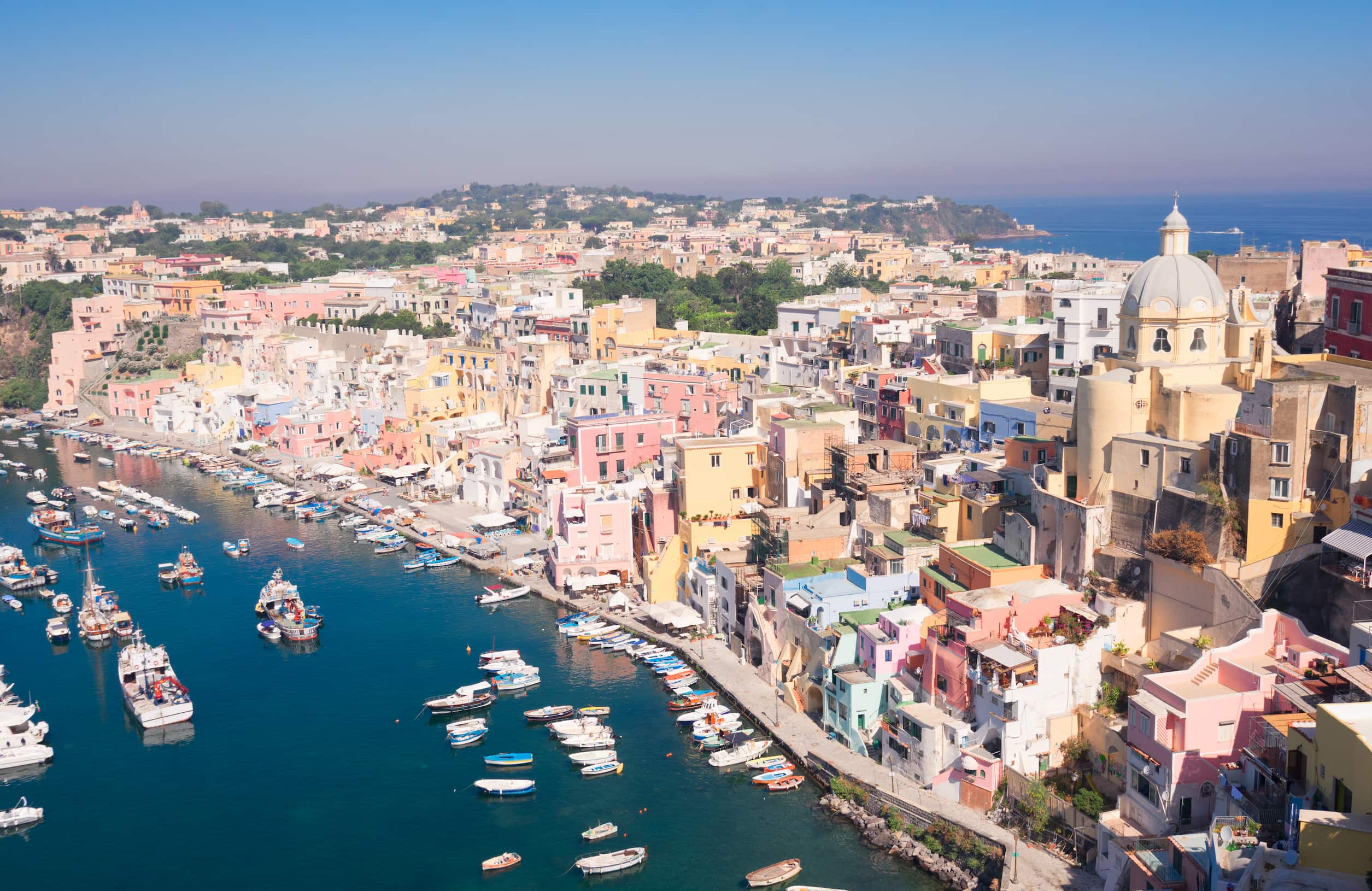 The route continues toward Ischia and Procida, showcasing Procida’s iconic Marina Corricella.